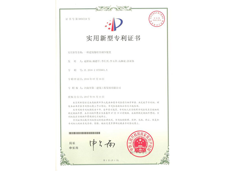 日前,我公司赵世福、杨德军、高林坡等人研发的“一种烟囱半径调节机构”和“一种建筑物壁厚调节装置”喜获国家实用新型专利,专利号为ZL 2016 2 0755529.9,ZL 2016 2 0755661.X。该专利是我司倡导科技创新工作有效实践,不仅提高企业核心竞争力,且为公司的市场发展提供了强有力的科技支撑,具有很高的实用价值。